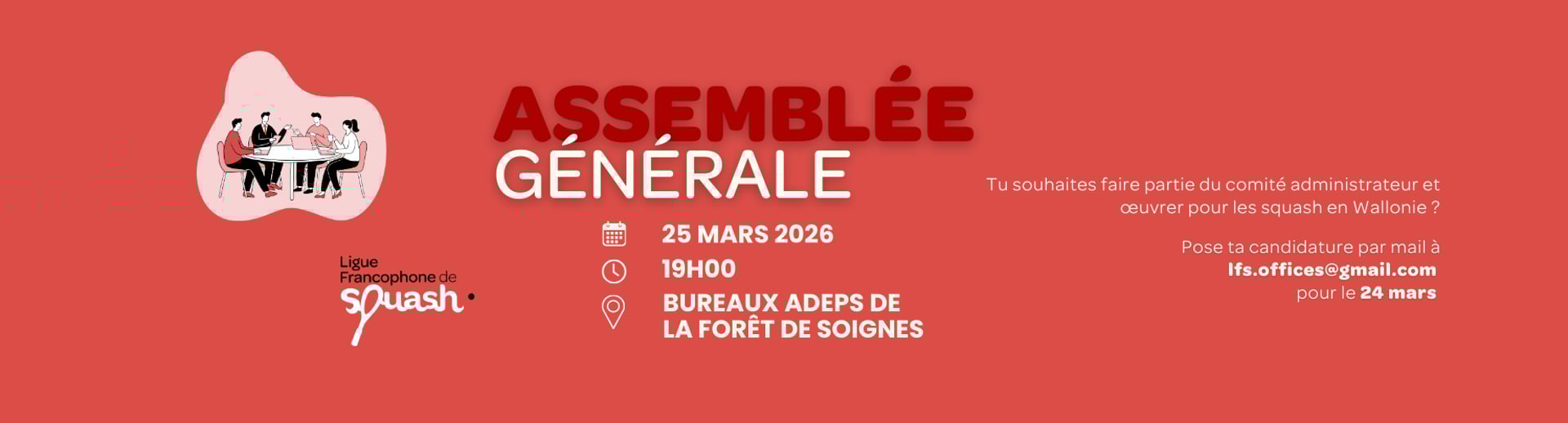Pour les membres affiliés à la Ligue Francophone de Squash toute la saison 2025-2026 !