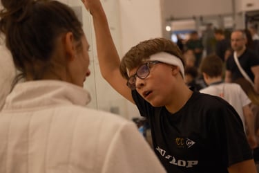 Les visages sont plus détendus. Les leçons de la veille sont appliquées. Josh enchaîne et file jusqu’en quarts. Hugo livre un match renversant : 2-0, puis rejoint… avant de reprendre le contrôle avec un calme impressionnant. Archie montre une nouvelle facette, plus posée, plus stratégique. Florian produit un squash de très haut niveau. Alice entre en scène et monte en puissance. Kai, Corentin, Leyan, Clément… chacun trouve des réponses. Le groupe vit bien. Les encouragements fusent. L’esprit d’équipe est fort.