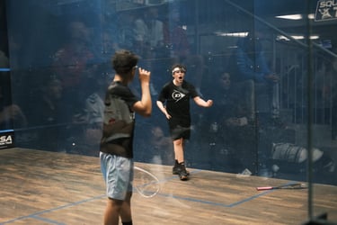Les premiers échanges donnent le ton. Coco et Josh lancent les hostilités avec une victoire. Ugo crée des opportunités intéressantes malgré la défaite. Leyan et Archie se battent face à des adversaires solides. Hugo laisse parfois les nerfs prendre le dessus… mais quand il se libère, le squash est magnifique. On sent déjà que quelque chose peut se débloquer.